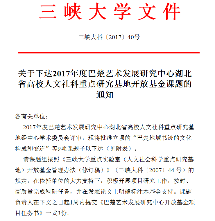 附表:2017年度bet365体育在线游戏湖北省高校人文社科重点研究基地开放基金项目表
