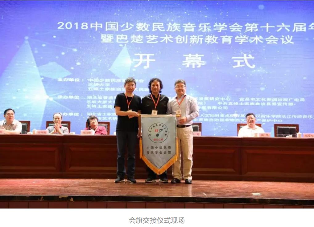 随后的接旗仪式中,在中国少数民族音乐学会会长和云峰的主持下,由本次会议承办单位bet365体育在线游戏代表余锐副教授将“中国少数民族音乐学会会旗”交至下一届主办单位代表中央民族大学音乐学院院长包爱军教授手中。