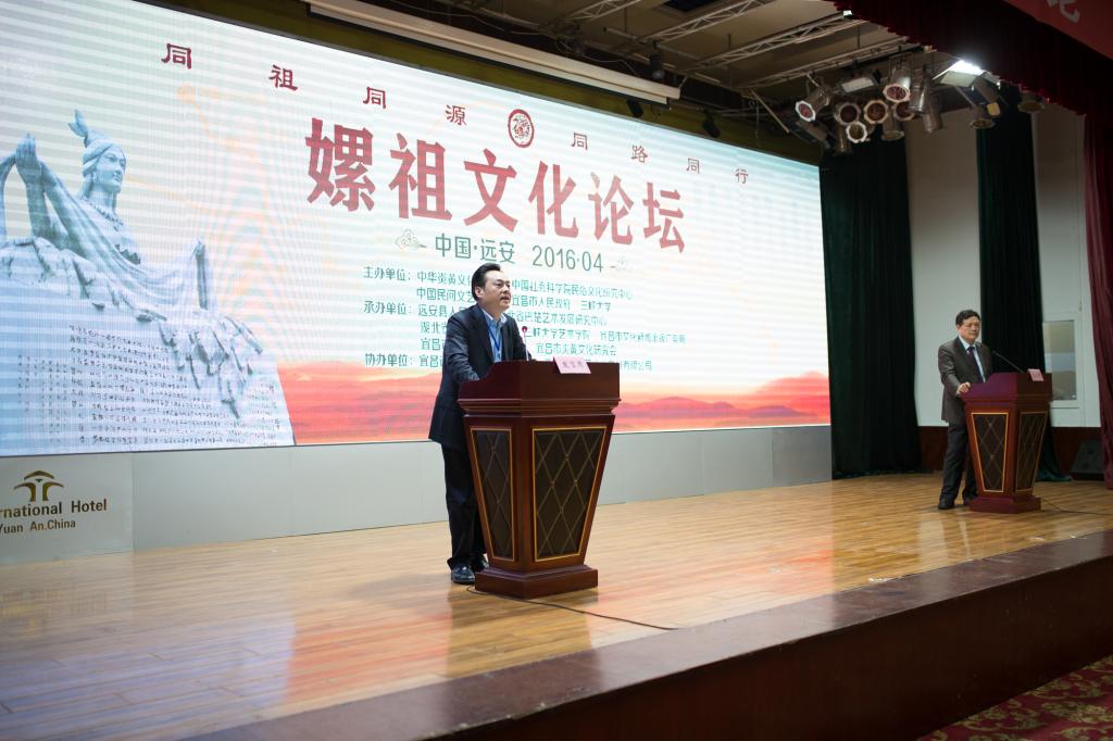 4月21-22日,由中华炎黄文化研究会、中国社会科学院民俗文化研究中心、中国民间文艺家协会、宜昌市人民政府、三峡大学主办,由远安县人民政府、bet365体育在线游戏、三峡大学艺术学院、湖北省民间文艺家协会等单位承办的“同源同祖,同路同行——嫘祖文化论坛”,在湖北省远安县远安国际酒店成功举行。来自三峡大学、武汉大学、武汉音乐学院、马来西亚南方大学、中华炎黄文化研究会、中国社科院、台北教育大学等两岸三地的专家学者参加了本次论坛。三峡大学校长助理陈和春教授、宜昌市人民政府副市长王应华先生分别在论坛开幕式上致辞。
