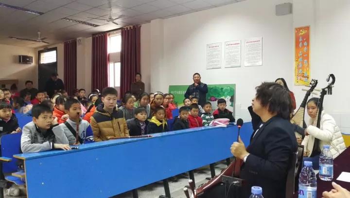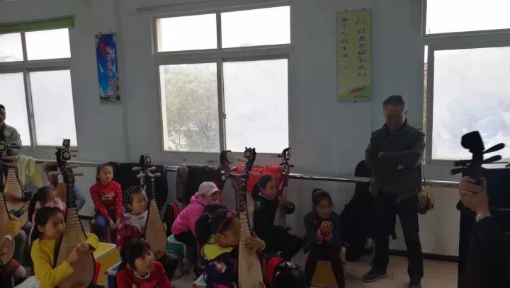 随后,一行人观看了学生的表演,民乐合奏《茉莉花》、《金蛇狂舞》。乐小弟亲自为孩子们示范乐器。陈宇京教授对民乐队的孩子们给予了厚望,并提出殷切希望,希望孩子们刻苦训练、快乐学习,长大为建设家乡报效祖国贡献力量。